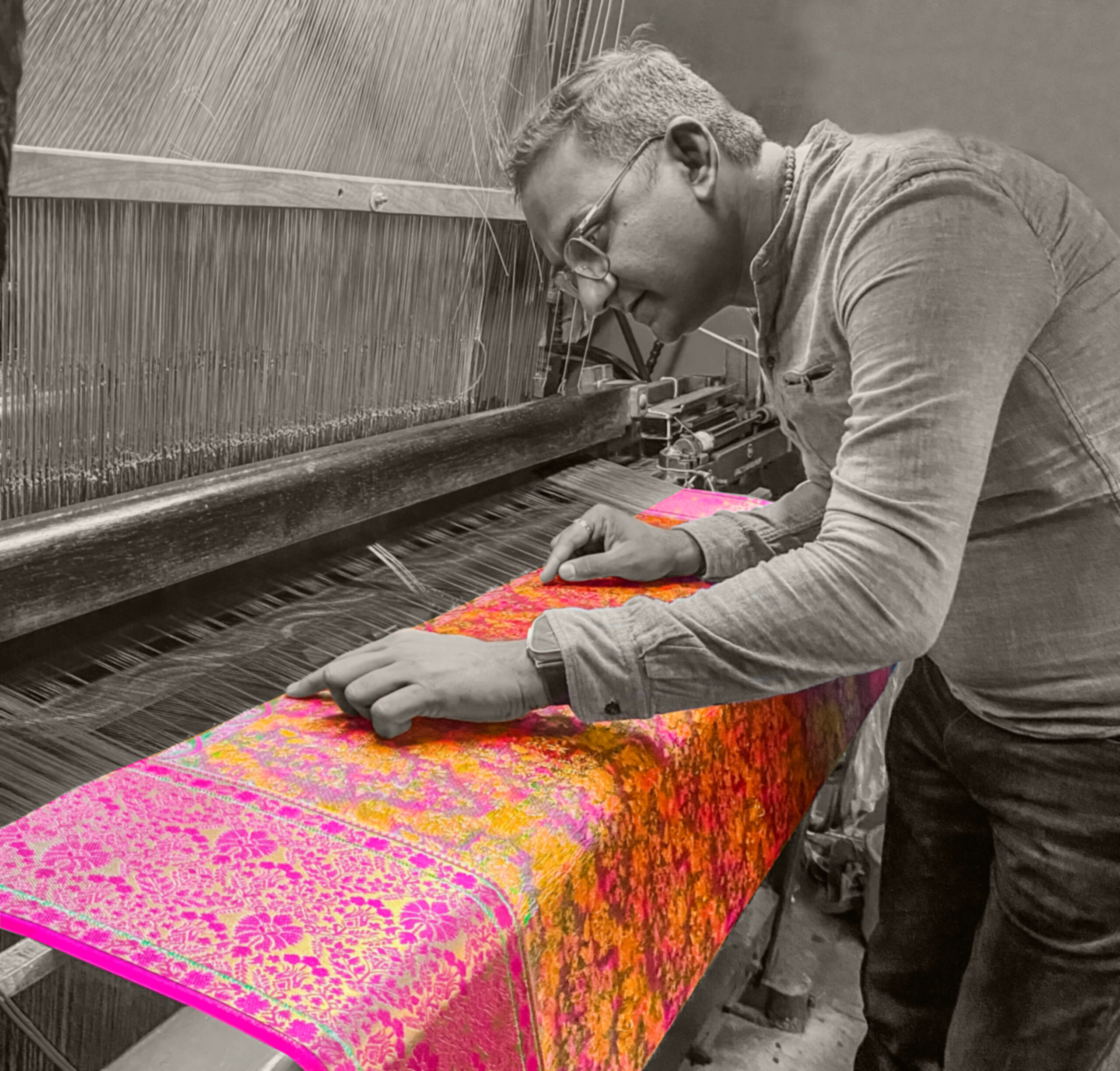 The special thing about Silkmala is our complete in-house production. From designing and weaving to printing and finishing, every single step is done under one roof by our own skilled artisans. We buy only raw yarn and carefully craft each piece—no outsourcing, no compromise.